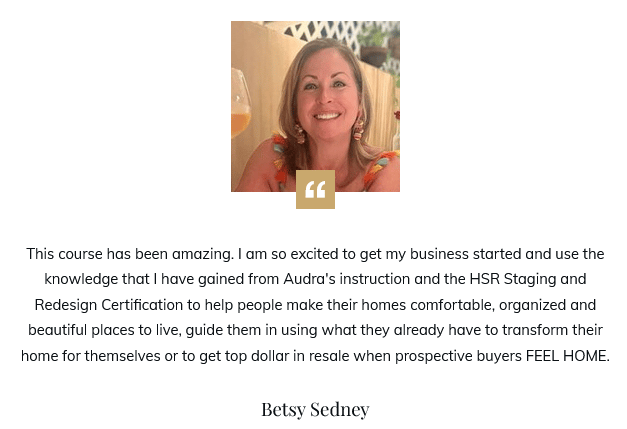 I'm super proud and privileged to have been nominated again for the Most Influential People in Real Estate Staging! I would love your vote if you have a moment. Click on the image to vote: What makes me most proud is that 9 of the 13 stager speakers at RESACon got their start with my training and are so generously giving back to the industry!๐๐ I'm also incredibly proud of the TONS of HSR influential (over 50%) who have been nominated like me and who are always giving back and growing our industry... love you and appreciate you dearly!๐ I've got TONS more to share including many updates to our training products, so stay tuned... โ XOXO - Happy Color and Staging! Audra Slinkey Creator of the Home Staging Resource. Expert E-Designer & Certified Color Expert Training audra@homestagingresource.com Got questions? We have answers: 858.255.1631 PS - For details about my Staging Certification Course, CLICK HEREโ PSS - An exact replay of the workshop will go to your email after the event if you sign up, so even if that time doesnโt work for you, sign up anywayโฆ Special thanks to Elizabeth Moore of Twin Win Staging who made my Friday by sending me this testimonial today๐ฅฐ: "Audra's HSR Training provides comprehensive, detailed training on all aspects of home staging and re-design. No stone is left unturned! From the how-to marketing videos to design & shopping tips, to my personal favorite-the interviews, this program is the real deal! I was astounded by the amount of material covered in this program, especially when it comes to marketing. Audra truly shines in her marketing training, which is a crucial step in this home staging journey. I love how these videos can be revisited at any time, as a refresher course. Thank you, Audra!!" โ โ โ |