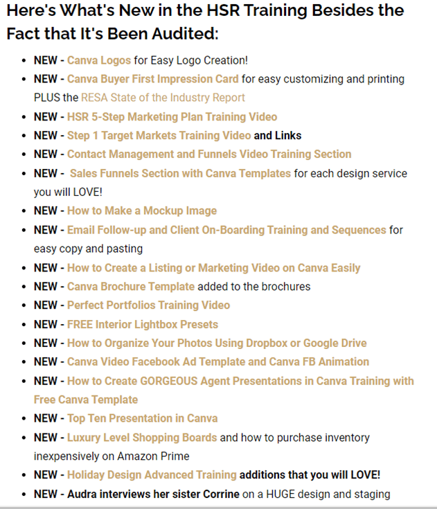 We have completely dialed-in and updated my HSR Staging and Redesign Certification training into a brand new learning platform! If you want to π see what's inside the NEW Training Area, I've created a quick video sneak peek, so you can see EXACTLY what's inside the course and if it's a fit for you.π₯°